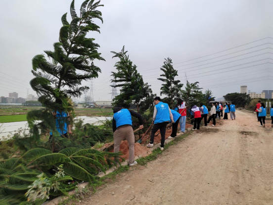 植樹現(xiàn)場,大家扶正樹苗、揮鍬鏟土、踩實(shí)新泥、提桶澆水,一棵接著一棵種,一派熱火朝天景象。在大家的共同努力下,一株株水杉、南洋杉迎風(fēng)挺立,煥發(fā)勃勃生機(jī),此次活動參加人數(shù)182人,種植水杉300株,南洋杉100株。