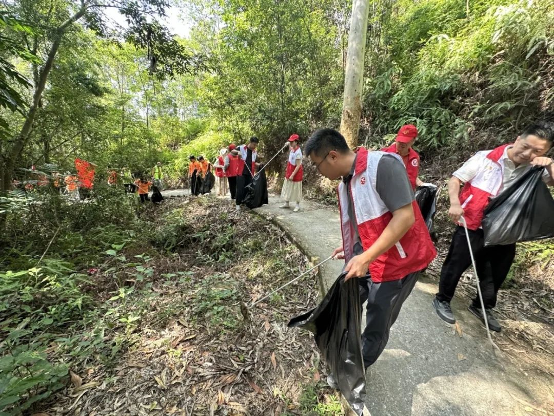 志愿者們兩至三人一組,默契配合,細(xì)致搜尋,認(rèn)真清理散落在步道、草叢中的煙蒂、塑料瓶、食品包裝袋等垃圾,一次次俯身夾取的,不僅是丟棄的垃圾,更是對生態(tài)文明的踐行與守護(hù)。