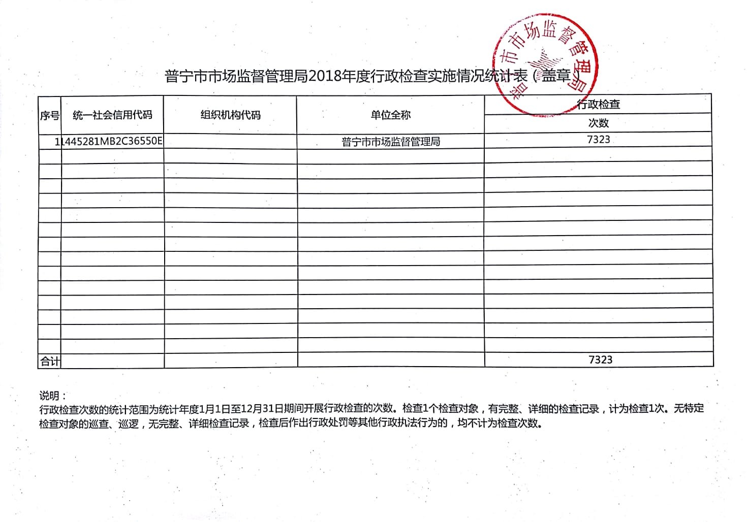 行政檢查實(shí)施情況統(tǒng)計(jì)表
