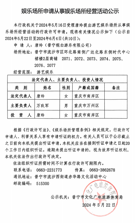 娛樂場(chǎng)所申請(qǐng)從事娛樂場(chǎng)所經(jīng)營(yíng)活動(dòng)公示