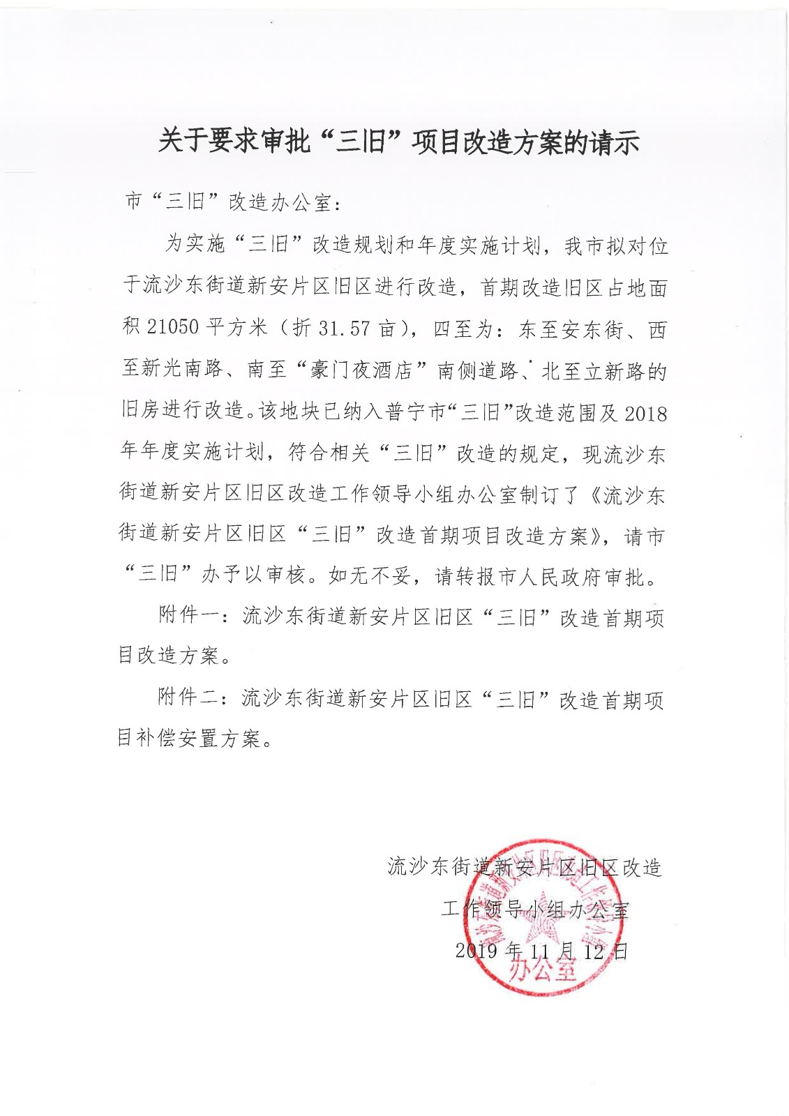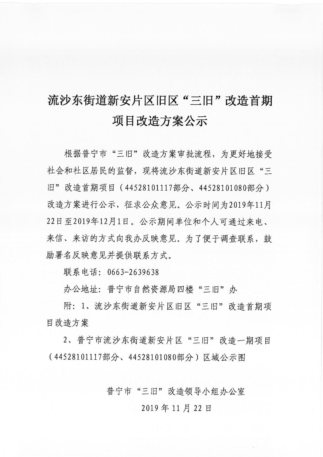 流沙東街道新安片區(qū)舊區(qū)“三舊”改造首期項目改造方案公示