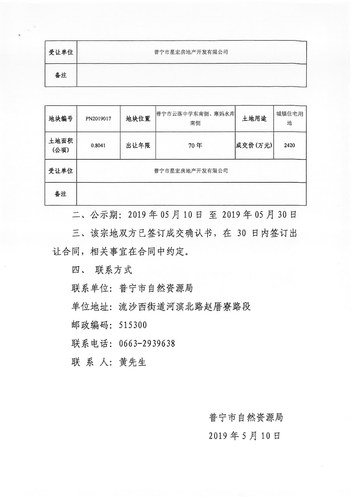 PN2019011號地塊等七幅地塊國有建設用地使用權公開掛牌出讓成交公示