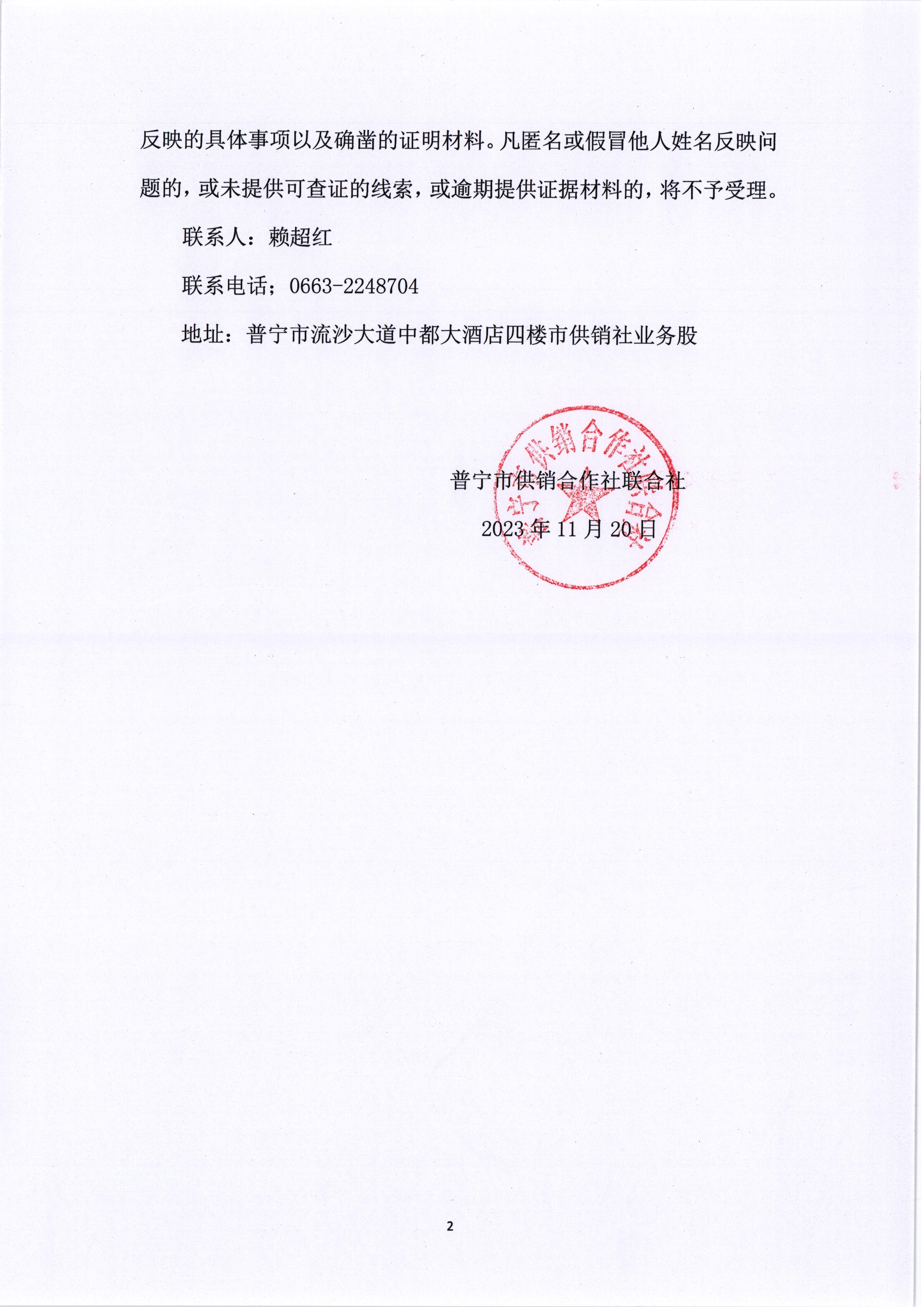 來(lái)源:普寧市供銷合作社聯(lián)合社 發(fā)布時(shí)間:2023-11-21 18:18 瀏覽次數(shù):- 【字體: