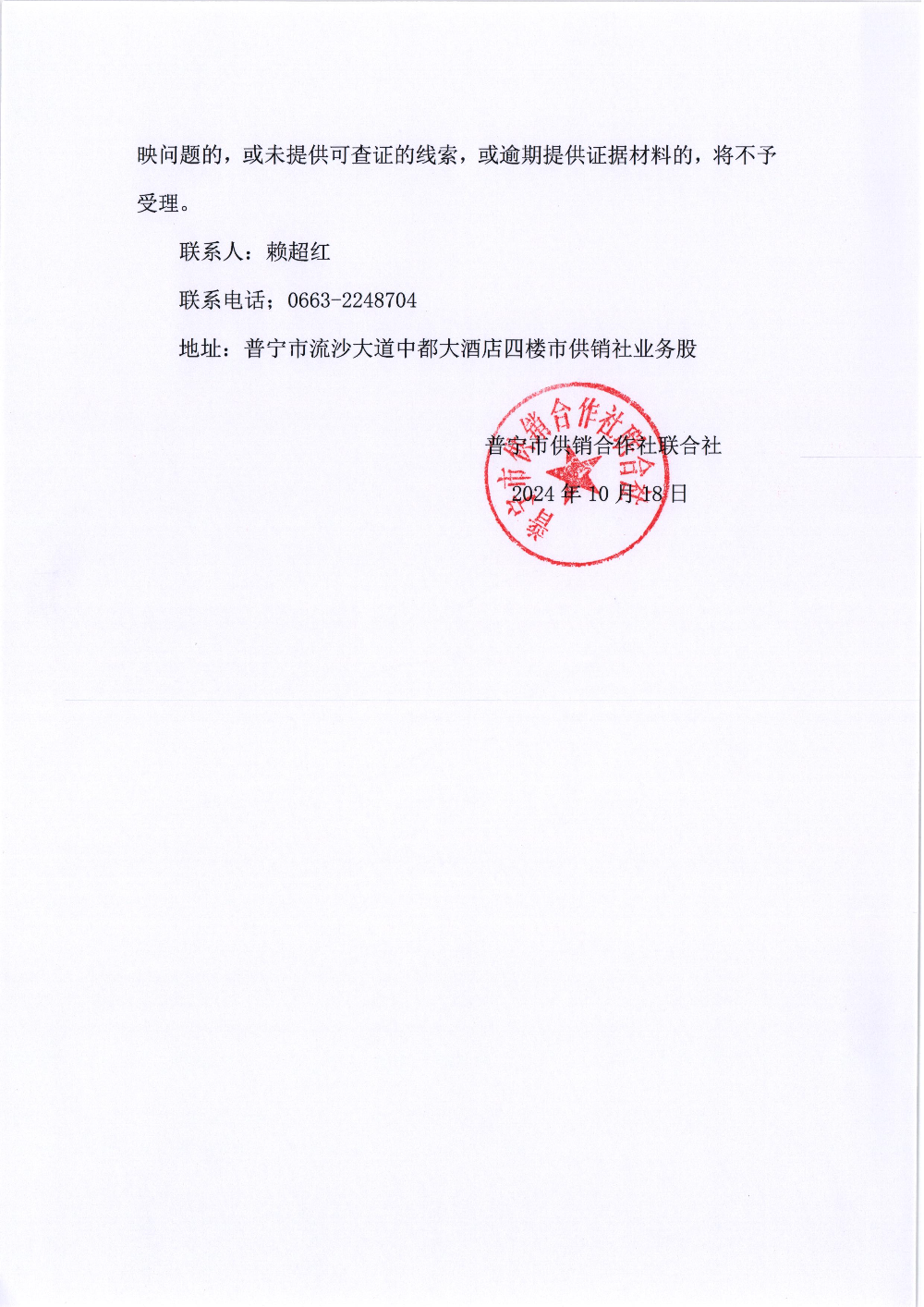 來(lái)源:普寧市供銷(xiāo)合作社聯(lián)合社 發(fā)布時(shí)間:2024-10-18 10:06 瀏覽次數(shù):- 【字體: