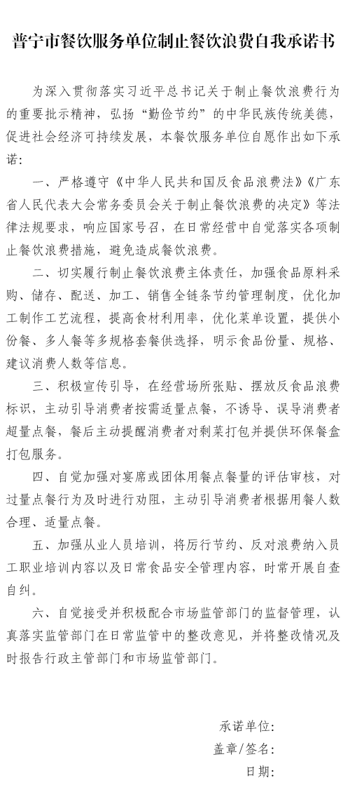 普寧市市場監(jiān)督管理局“制止餐飲浪費專項行動”線上簽名承諾活動