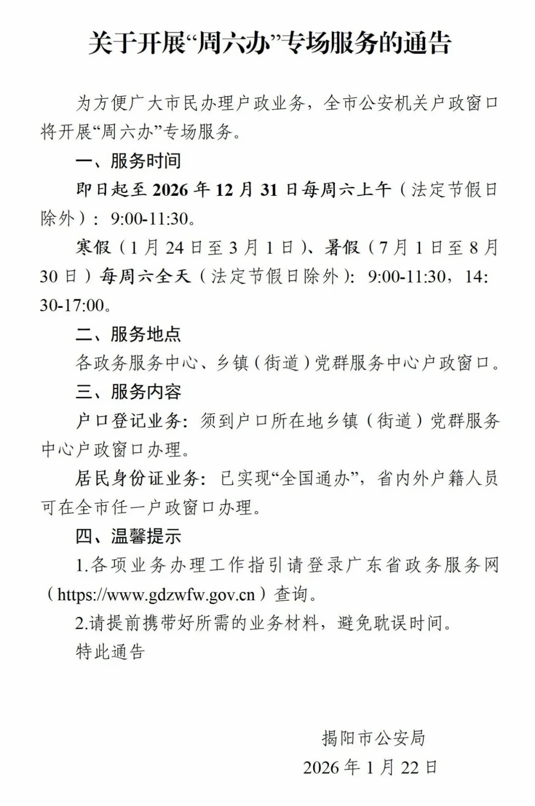 關(guān)于開展“周六辦”專場服務(wù)的通告