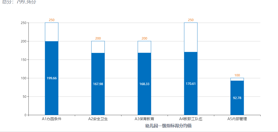 從幼兒園總分和一級指標(biāo)得分均值可以看出,在內(nèi)部管理方面評估得分最高。在教職工隊(duì)伍建設(shè)方面還有差距,存在不足。評估數(shù)據(jù)分析中,公辦園得分803.15分,民辦園得分795.48分;城鎮(zhèn)園得分800.52分,農(nóng)村園得分777.76分;普惠園得分794.24分,非普惠園819.55分。城鄉(xiāng)之間、普惠園與非普惠園之間還是存在一定距離。