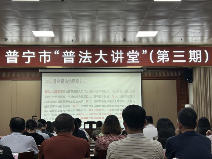 本期“普法大講堂”針對新修訂的《中華人民共和國行政復(fù)議法》及發(fā)揮法治思維在行政管理和執(zhí)法中的作用兩方面展開較為系統(tǒng)講授,有助于進(jìn)一步提升領(lǐng)導(dǎo)干部法治思維能力,提高全市依法行政水平,推進(jìn)新修訂的《中華人民共和國行政復(fù)議法》全面有效實(shí)施。下一步,普寧市將繼續(xù)開展“普法大講堂”活動,進(jìn)一步增強(qiáng)全市領(lǐng)導(dǎo)干部尊法學(xué)法守法用法意識,持續(xù)為普寧市高質(zhì)量發(fā)展注入法治新動能。