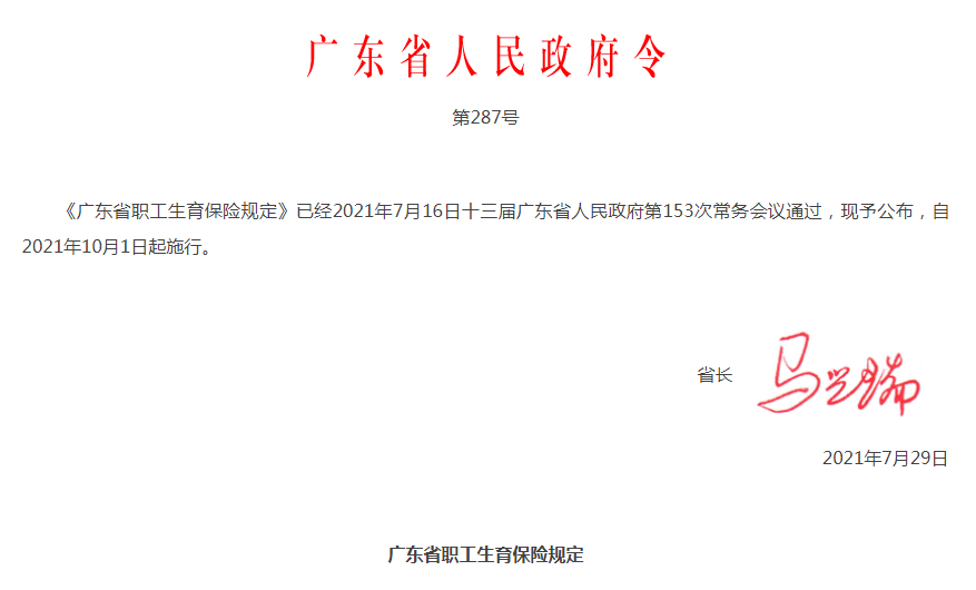 第三十七條本規(guī)定自2021年10月1日起施行。廣東省人民政府2014年11月6日公布的《廣東省職工生育保險規(guī)定》(省人民政府令第203號)同時廢止。