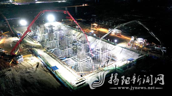 經(jīng)過施工單位日夜奮戰(zhàn),廣東石化煉化一體化項(xiàng)目建設(shè)中最大體積的混凝土一次性澆筑作業(yè)順利完成。貝寧旭 攝
